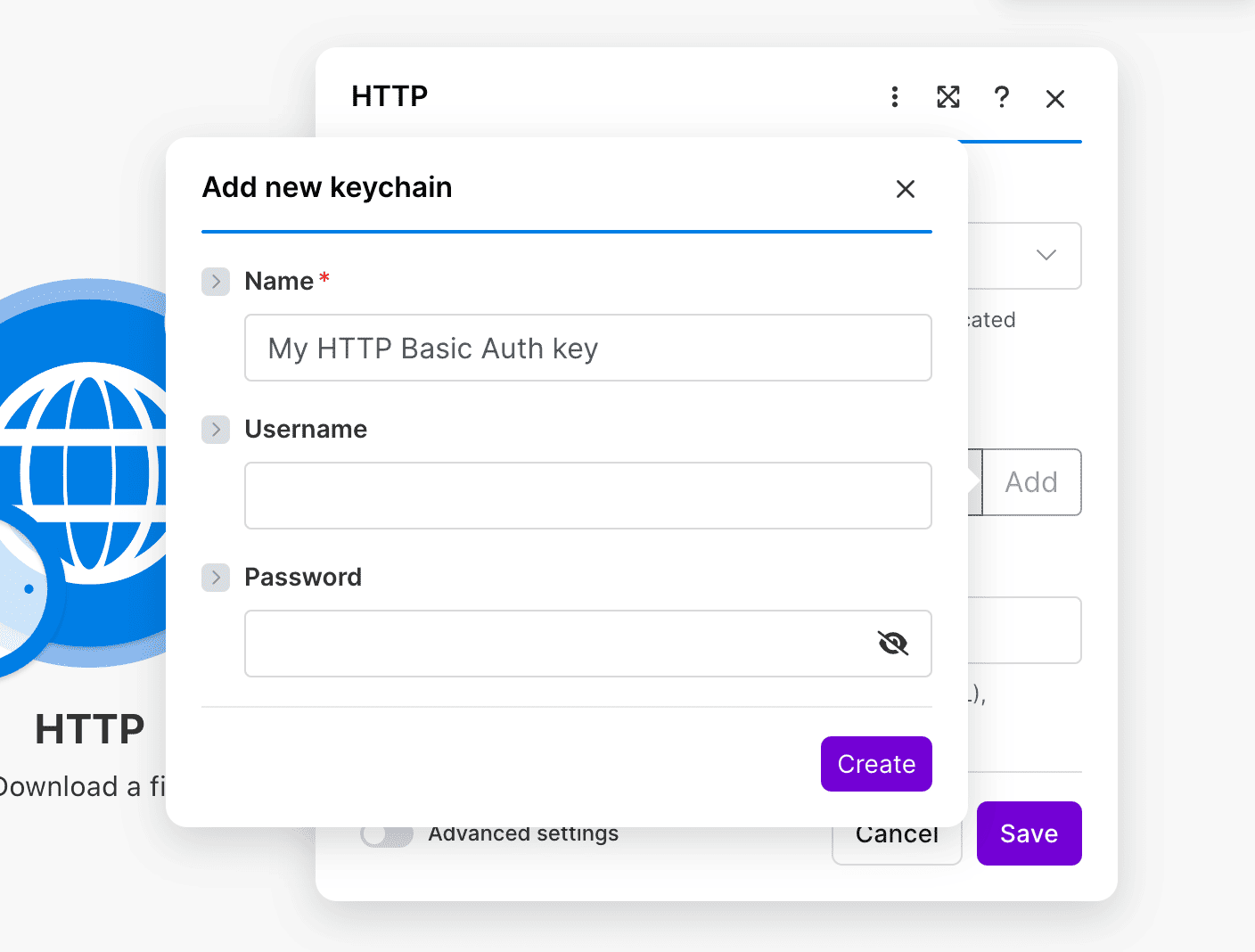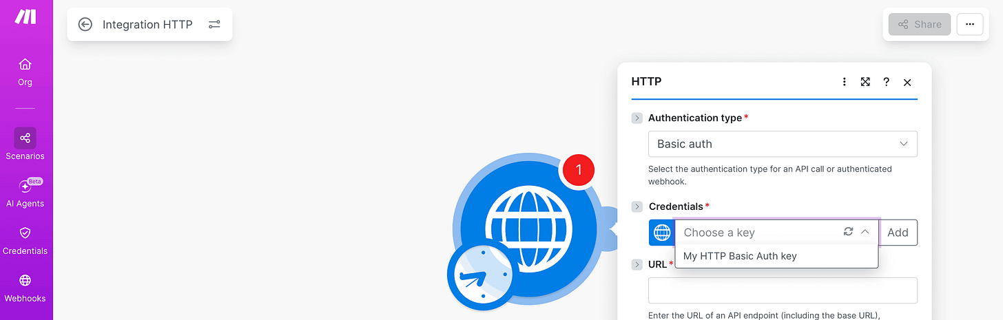 Now, go to Credentials and click on the input box. You should see “My HTTP Basic Auth Key”. Click on it and select Add.