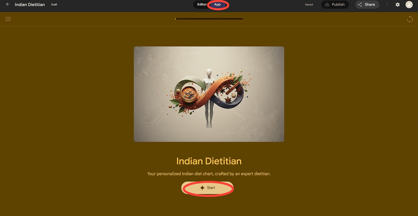 1. Enter your app idea into the chat box. Here’s what we’re using for the Indian Diet Chart app.