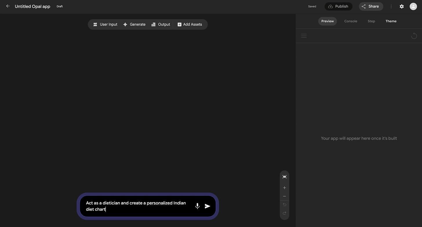 Google markets Opal as a visual vibe coding tool that lets you build AI mini-apps using natural language. So, in theory, you should be able to enter prompts on Opal and let the tool build a mini-app out for you.