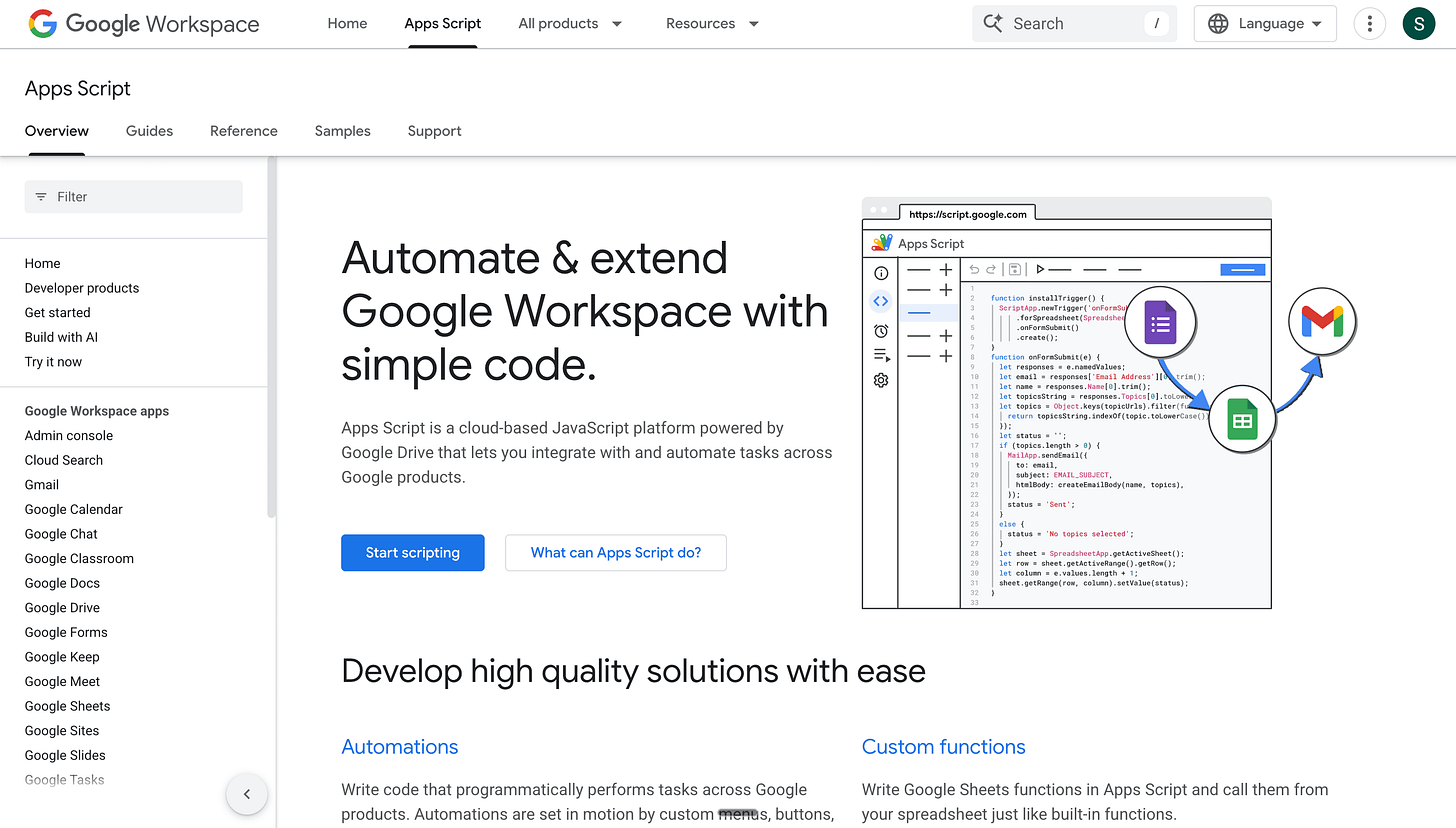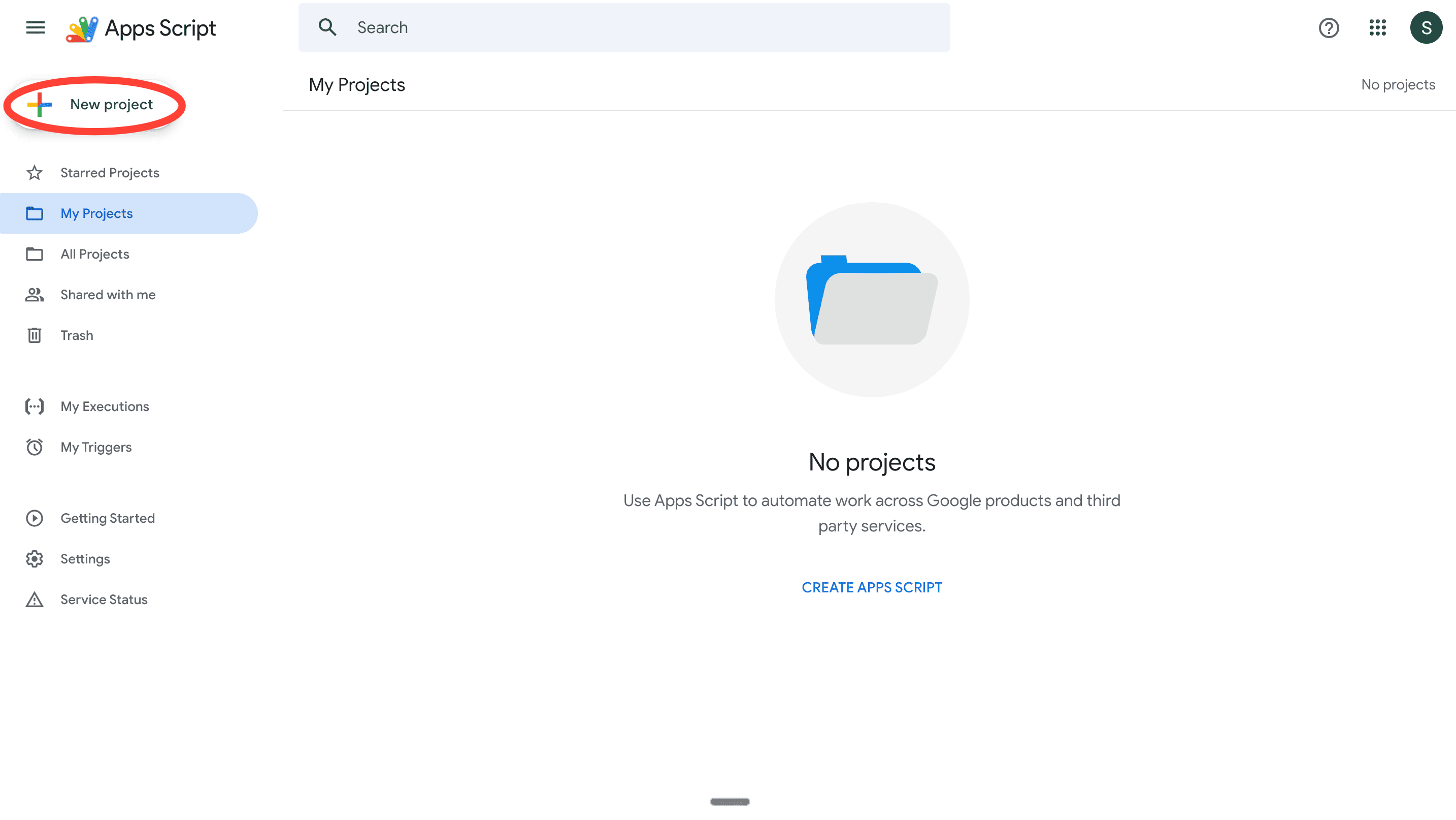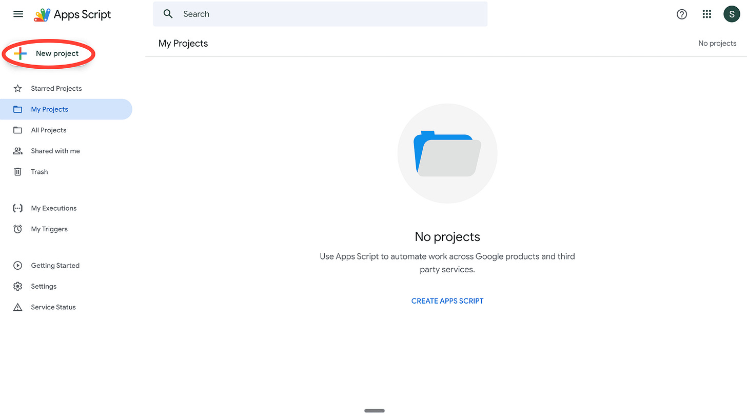 1. Head to script.google.com. This is what you should see. Get ready, this is where we’ll build out the app.