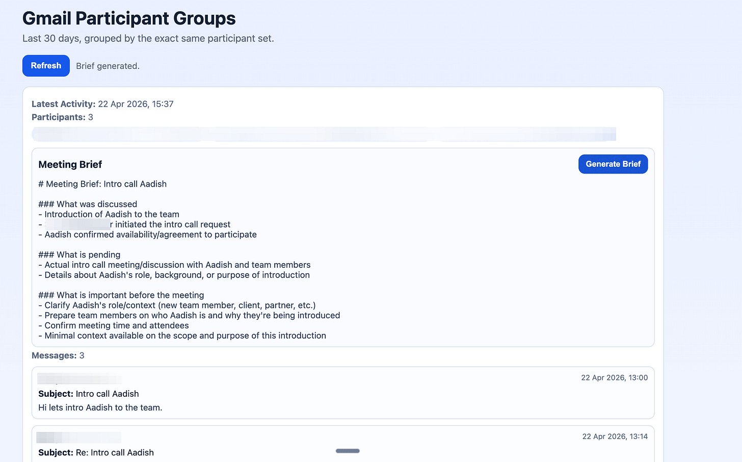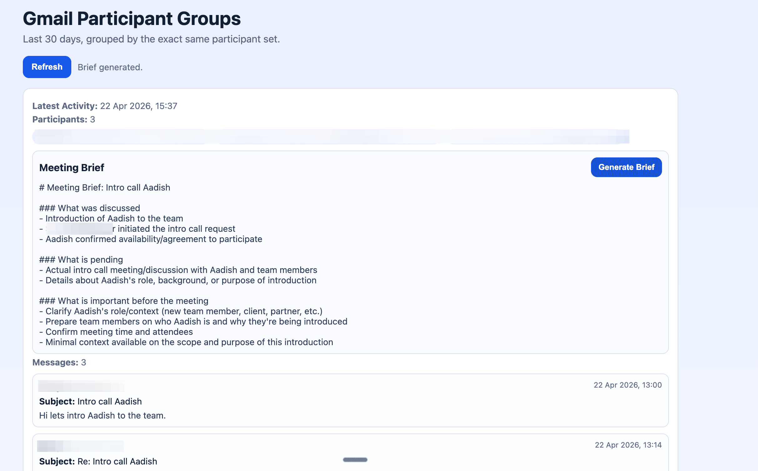 But it works. Pull up any thread, click Generate Brief, and you’re prepared in seconds.