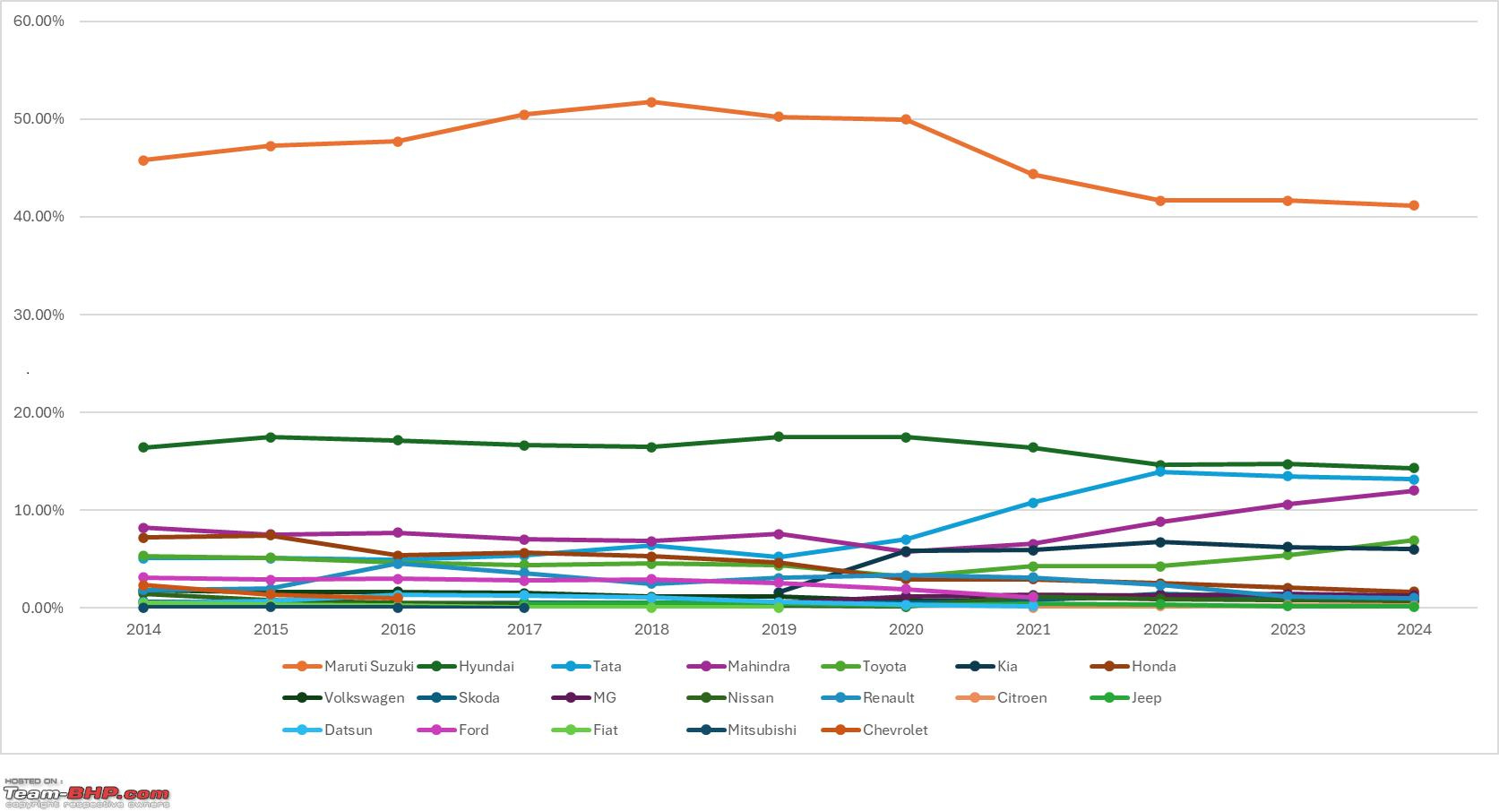 Maruti Suzuki beat its competitors on all three accounts every single time. And they had a lot of tailwinds (Uber/Ola launching), having the most fuel-efficient vehicles at a cost that made business-model sense for cab operators, which destined the company to own the Taxi market.