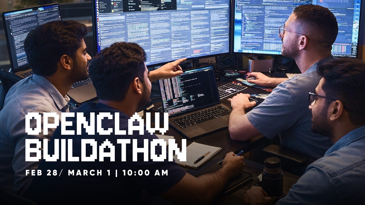 So instead of figuring it out alone, we’re bringing people together. We’re hosting an 8-hour OpenClaw buildathon, where everything gets handled in one room — finding a problem worth solving, hosting, building the agent, and getting real feedback from people who use the tool every day.