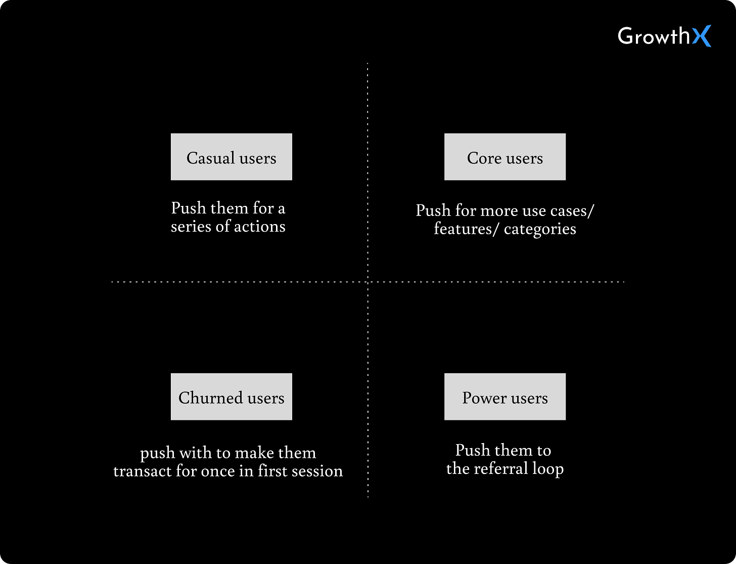 Core users - push them to transact more with another use case of PayTm, say lending/ credit card, something that builds exit barrier for them to churn.