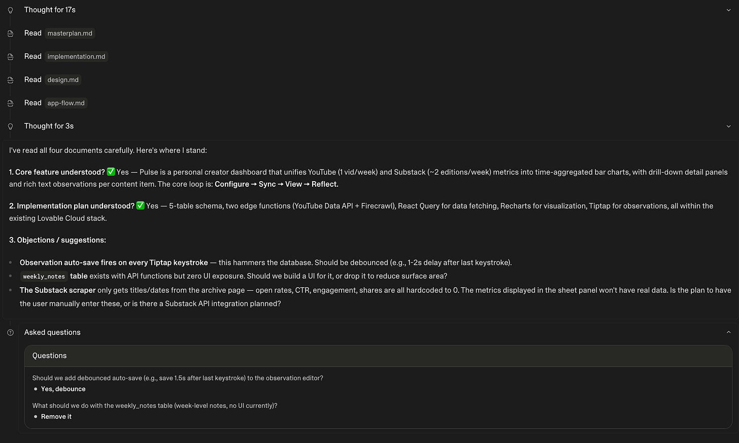 Lovable will now ask you questions to better understand the project. Here’s what it asked me, and my answers.