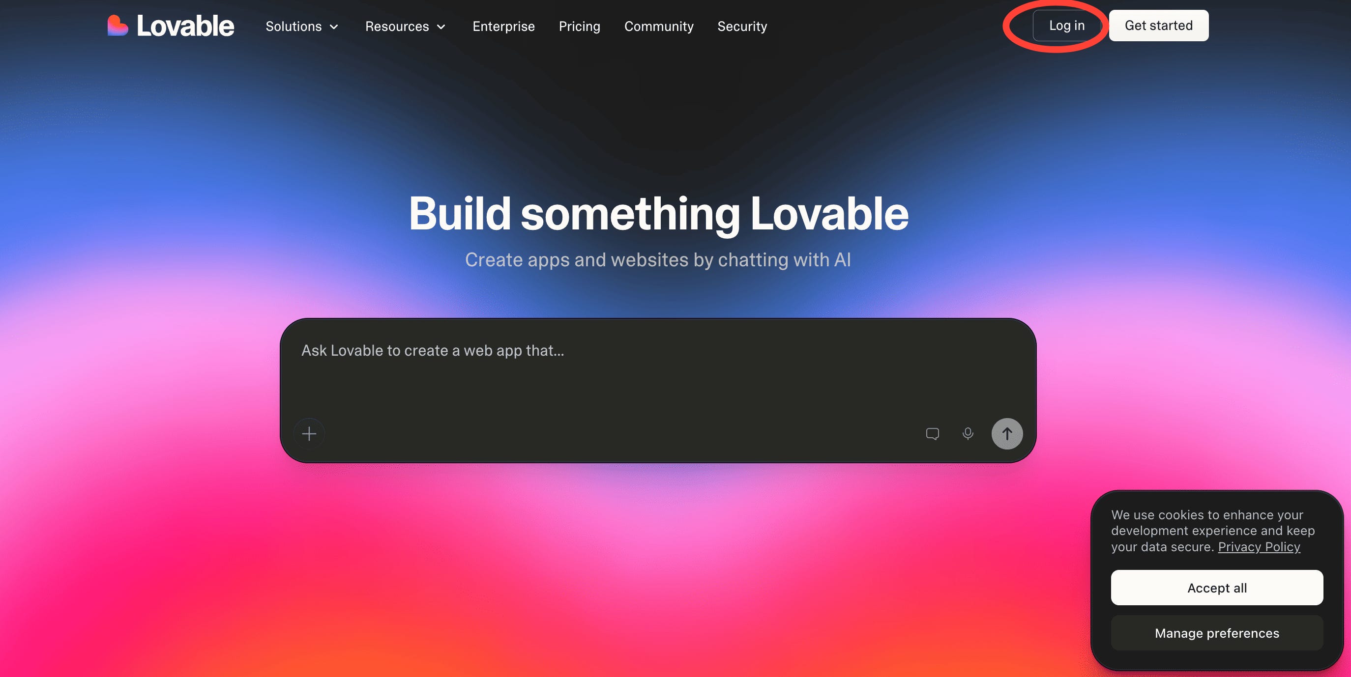 You’ll land on Lovable’s homepage. Now, click on Log In.