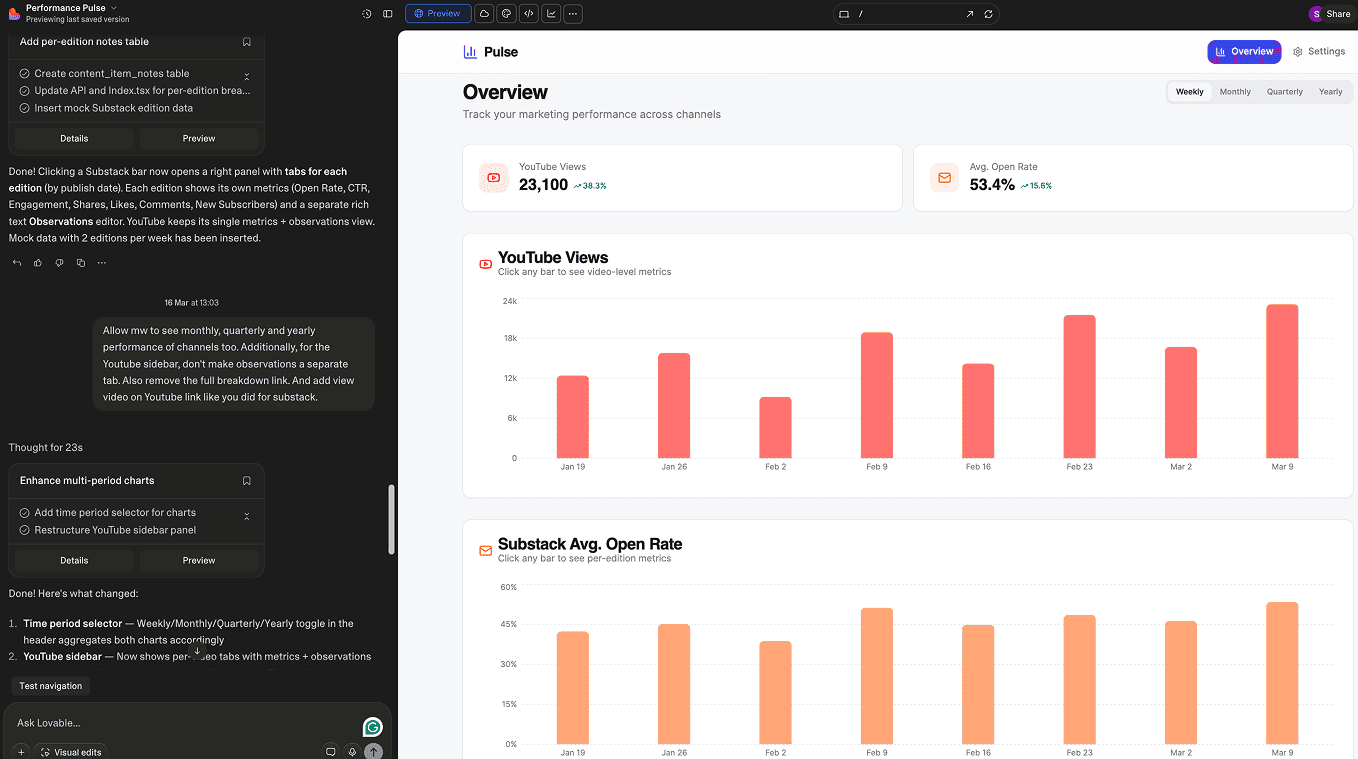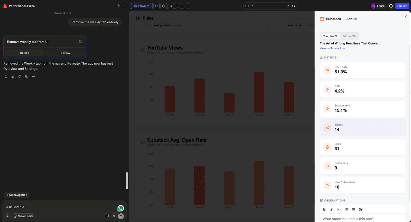 The setup felt simple because it was. But don’t let that fool you. Lovable apps can be as complex as you need them to be — API calls to fetch data, integrations to keep everything in sync. The building blocks stay the same; you just stack them differently.