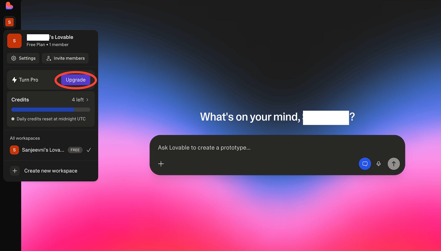 We’ll be using “Plan” mode today to structure our project. This will help us build our web app in under 90 minutes. It is credit-intensive, so we recommend upgrading to a 1-month plan to create this project. Here’s how to do it.