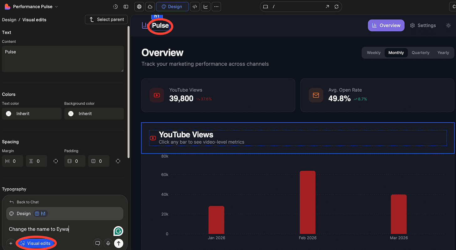 If you want to change specific details about the file, click on Visual Edits. This opens the editor, where you can click an element to edit it. Here, I edited the app's name.
