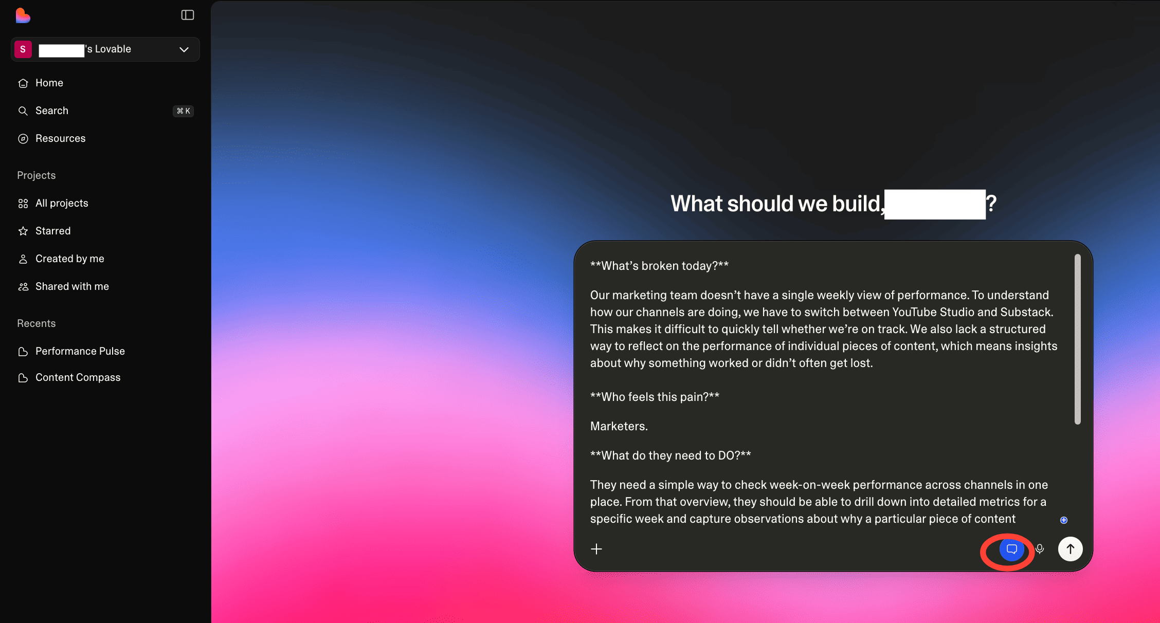 Copy your answers to the framework and paste them into the Lovable chatbox. Make sure to turn the “Plan” mode on.