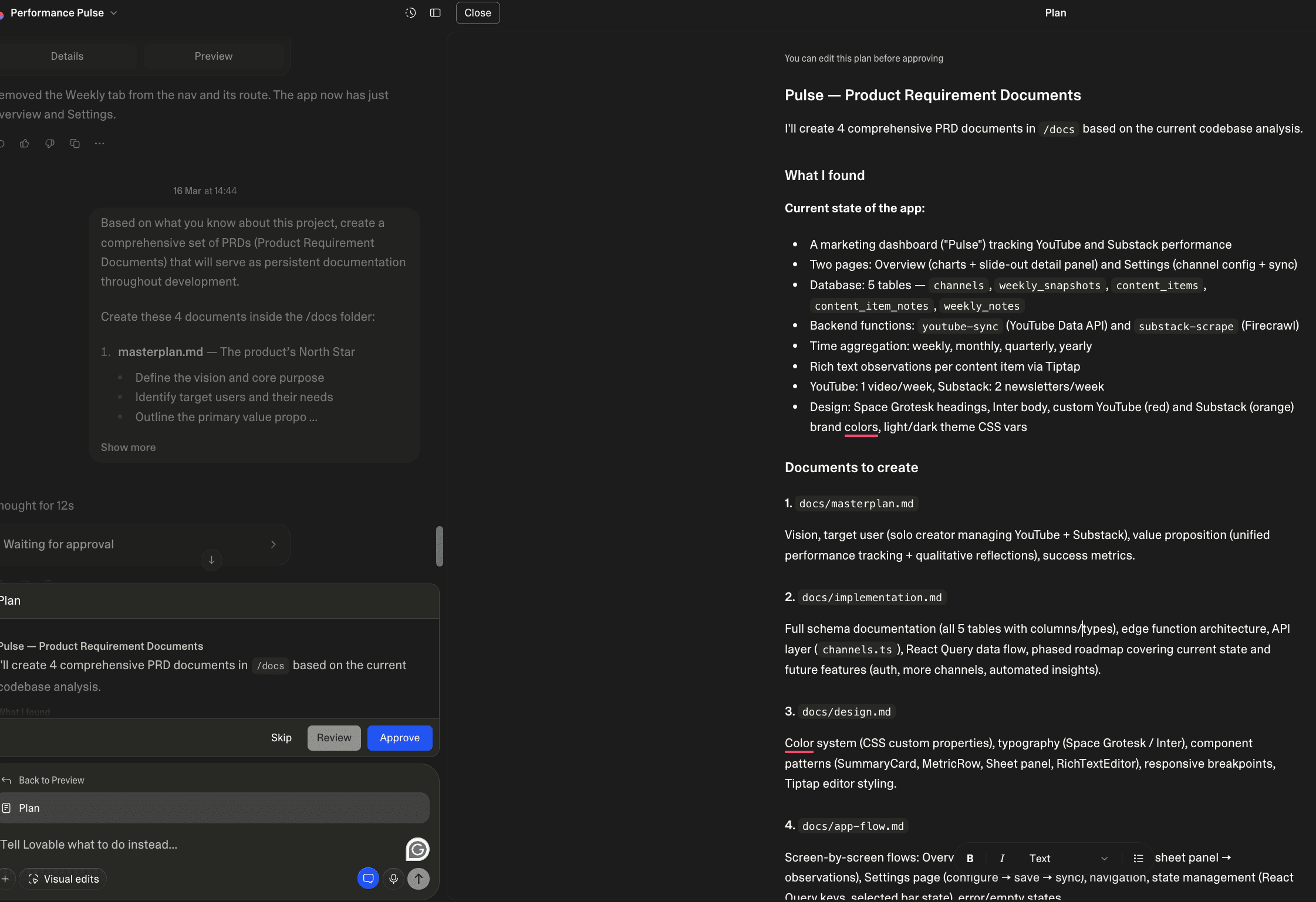 Remember, Lovable found it hard to keep track of context? That becomes a massive problem when letting Lovable build autonomously — you never know when it’ll go off track. Today, we’re solving this problem with documentation. Here are the steps to build it out.
