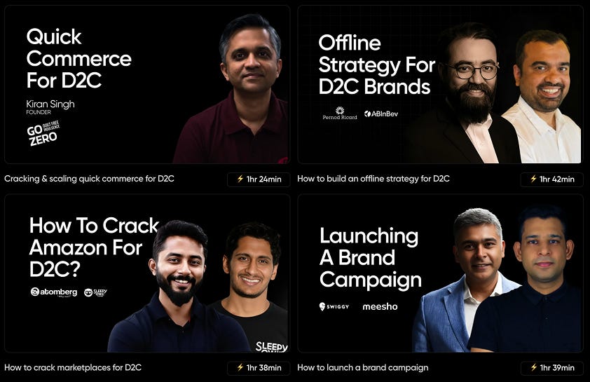 At GrowthX, we have done multiple deep dives (90-minute live learning sessions)on building every part of the D2C business with experts at AbinBev, GoZero, Meesho, SleepyOwl Coffee & more.