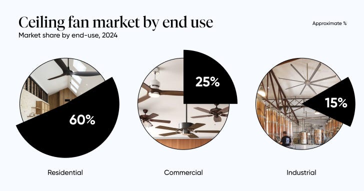 You already know that finding product-market fit is easier in established categories. Just follow the trend of where similar products are used. For example, if you see more men use dating apps, sell to them. Easy. Here’s a distribution of how ceiling fans get used in India.