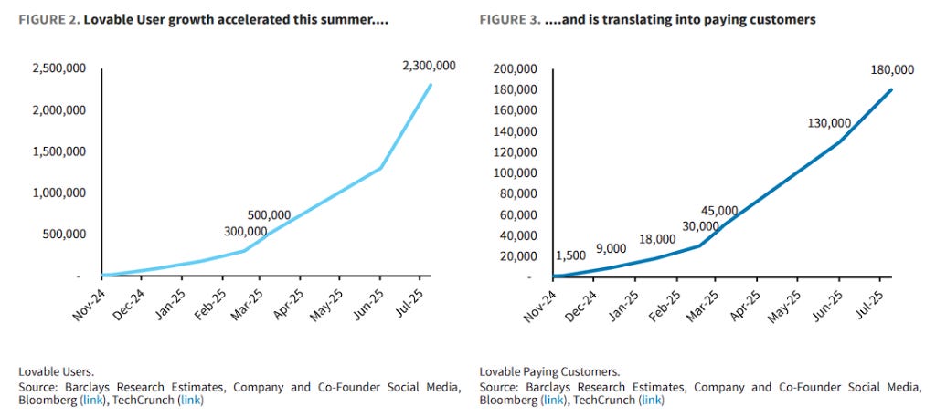 Lovable went after individual users instead of enterprise deals and showed a 6-month compounded growth rate (CMGR6) of 51%. That’s PMF you can’t argue with.